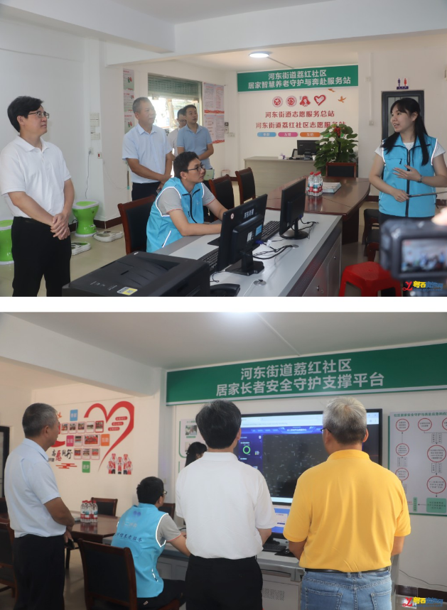 在河东街道荔红社区居家养老奔赴服务站,调研组对小二居家智慧养老服务工单流程、上门服务规范以及社区居家安全守护与奔赴应急响应流程等进行深入了解。该服务站作为河东街道办采用公建民营方式建成的服务网点,由茂名市小二社区居家养老服务有限公司负责区域内社区居家养老服务运营,是当地构建基层养老服务网络的重要实践。