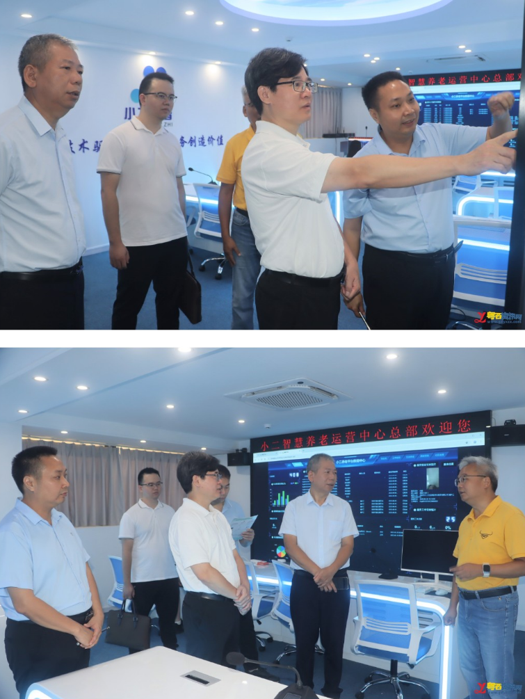 调研组首站来到茂名市小二社区居家养老运营总部,实地考察居家养老守护与奔赴服务项目。该项目创新运用物联网、大数据、AI建模等现代信息技术,构建了24小时全天候智慧养老服务体系。调研组详细了解了服务项目内容、标准化服务流程、智慧化管理模式及特色养老服务体系建设情况,并现场观摩了智能终端设备的操作演示。